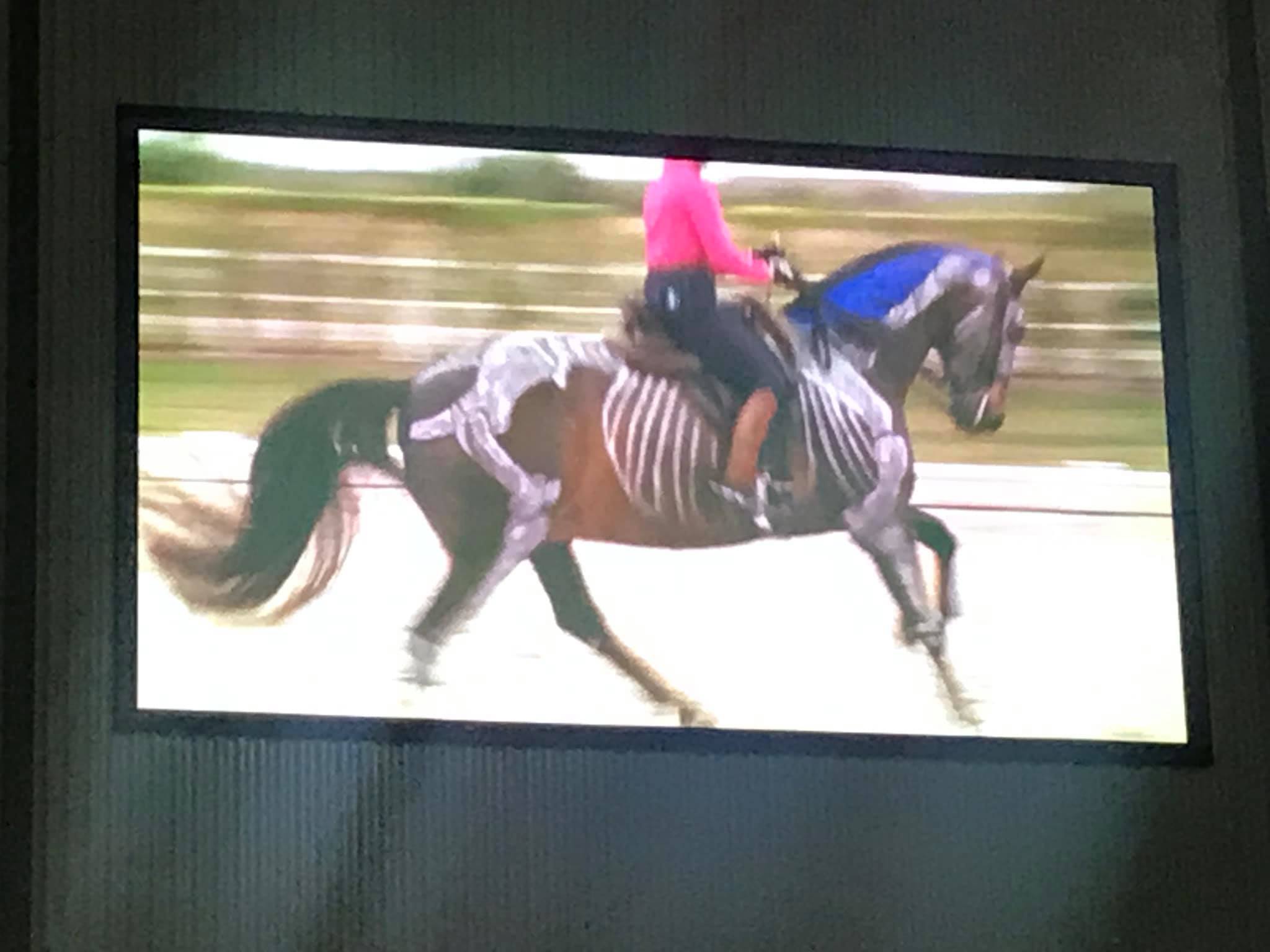 BACH’s special meeting on 23rds August offered us the opportunity to see the Museum of the American G.I. and use their big screen to see “Dressage Movements Revealed”. Thanks to Donna Meyer and On the Bit Farm, we were able to see this very interesting DVD, part of the “Masterson Method” series, which showed on an “illustrated” horses the action of the bones and muscles as he performed dressage movements: the basic gaits, and then the shoulder-in, half pass, zig zags all the way to the piaffe, passage, and canter piroutte. Most of us expected to see the big muscles along the shoulders and haunches at work but we were surprised to see the action of muscles along the top of the neck. The main “belly” area usually was not involved. After seeing enough videos, at least some of us were able to spot tiny irregularities in the movement of the lovely dressage horse performing the upper level movements, and saw how the very skilled rider could compensate. Good food for thought. If you intend to try to paint your horse, make sure that the paint will wash off and is not toxic to animals (or riders, for that matter).