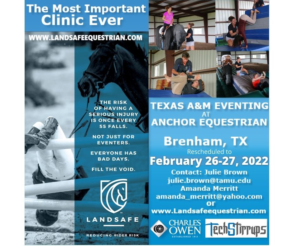 To Officially Register for Clinic: Please click on the following link to register – LandSafe Clinic- Texas A&M Eventing Team at Anchor Equestrian (striderpro.com) The link will direct you to the Strider website to sign up. To register please follow the prompts through the required fields, then use your credit card or pay pal to check out. You will receive a payment confirmation when complete.