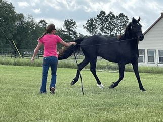 Throughout the demo, Jennifer gave us a lot of tips and insights into her thoughts and methods on training horses from the ground. It was easy to see that Nitro came already with a lot of training and trust even though he was not that familiar with trailering. I was thinking to myself that we need another session or two about making sure our horses are ready for a successful trailering session. Standby.
