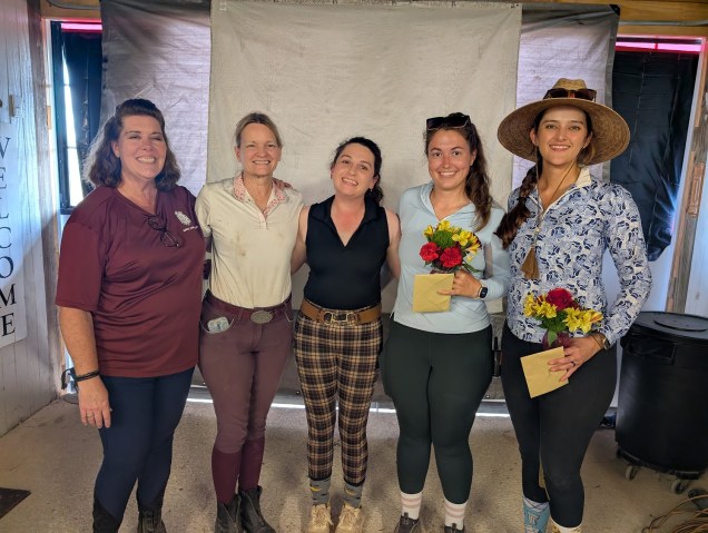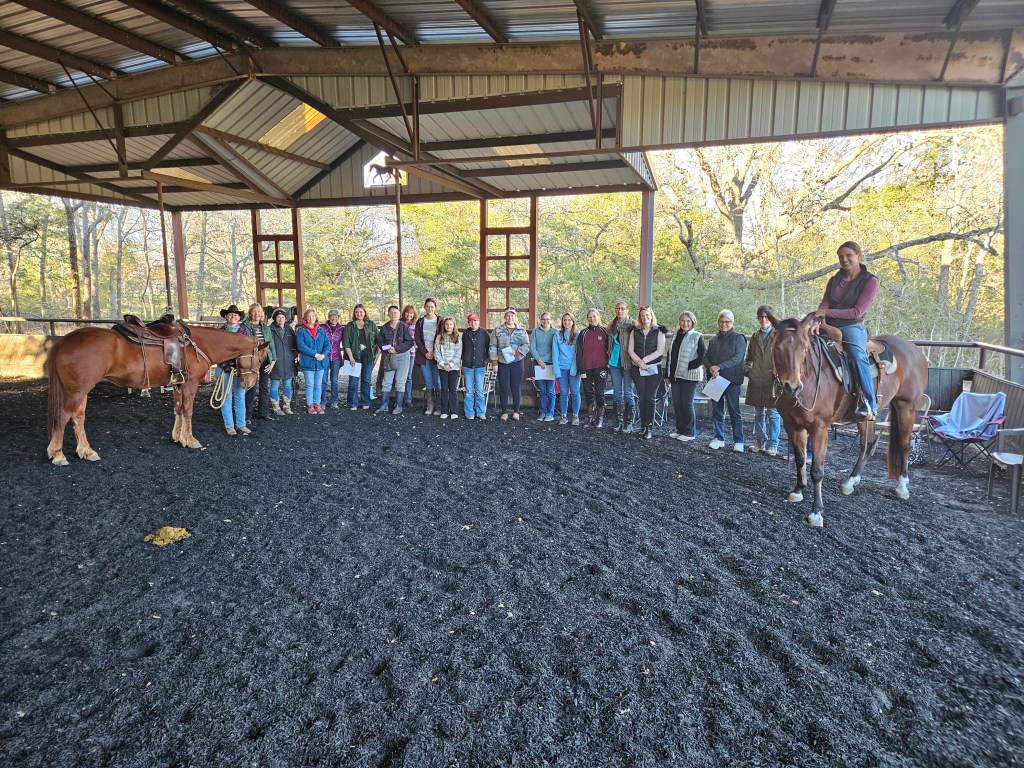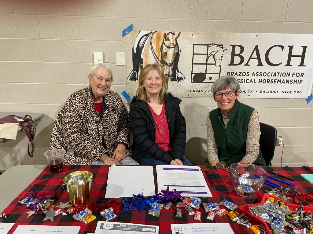 BACH members Bess Bruton and Karin Loftin and Amy Raines audit the Debbie McDonald clinic at Denali Sporthorses November 4, 2023