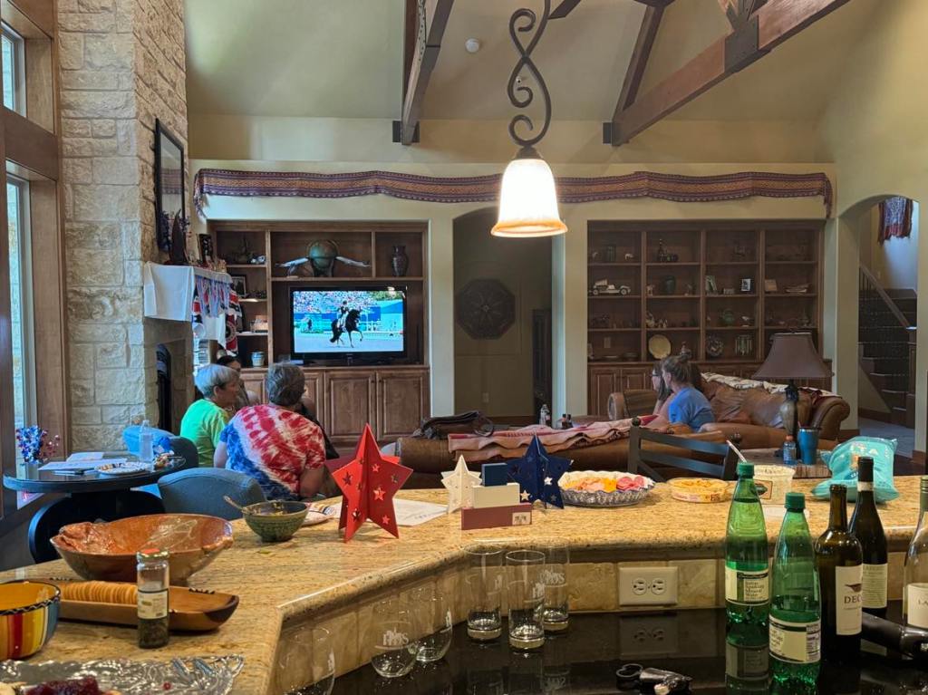 Watching the final Individual Dressage competition at Cynthia Werner’s house with a potluck dinner. August 4, 2024.